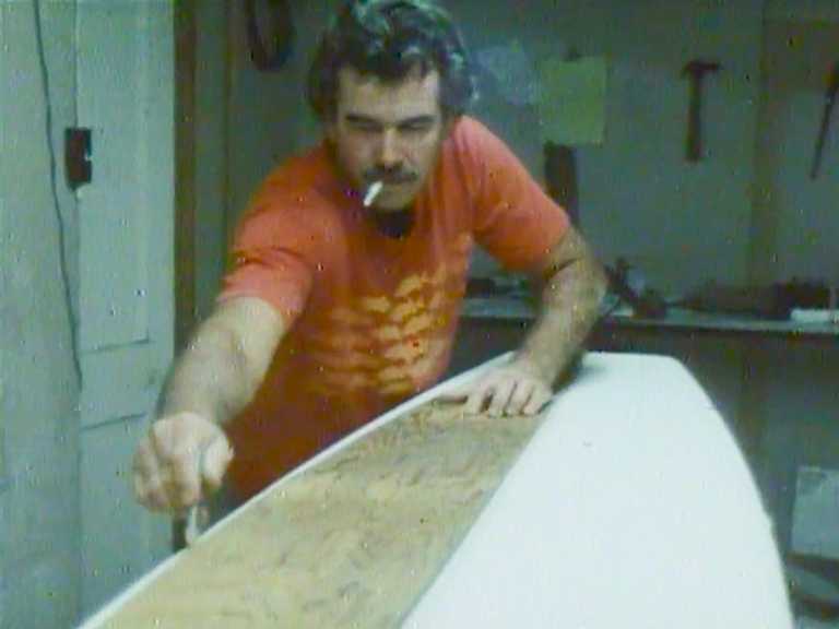 Howzit Bradda! is the name of the film and my Google searches have gone nowhere. No handbill art, no reviews, no IMDB listing. I’m guessing Howzit was released in 1978. Apart from a bit on that year’s Stubbies Pro, in Queensland, the entire movie is shot on the North Shore, like just about every other surf flick released in the 1970s, and the film over-indexes heavily on slow-motion—again, like everything else from the period. The soundtrack, though, is a huge cut above, mostly electronic and often experimental, like early Brian Eno dipped in wasabi, and between songs we get lots of synch sound: you hear the match flaring when mustachioed boardmaker Mike Diffenderfer lights a joint, for example, and a minute or so later we can hear the scratchy but comforting noise of pencil on foam as Mike draws out a template. The general Howzit vibe is that of someone (Fujimoto, presumably) thinking a foot or two outside the surf movie box, and it’s got me hotted up to find more Japanese-made surf films. Turn me on if you’ve got something on the hard drive!