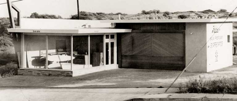 Even though Velzy was business-reluctant, and while his joint was, to put it kindly, stripped down (by the looks of the above photo, three years into his Manhattan Beach tenancy Velzy hadn’t even bothered to hang a sign), I’m inclined nonetheless to say this is indeed the original surf shop.