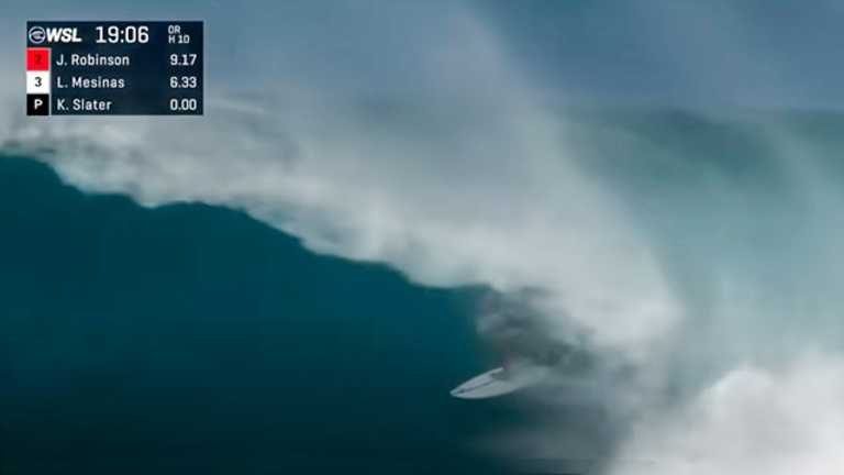 Slater, in middle age, is anti-factual, irresponsible, and flagrantly narcissistic. But in those stretched-out moments at Backdoor, live and during the many replays to follow, watching this aging surf Jedi weave through the shadows, calm and utterly in control, I am tractor-beamed into wanting his score to go higher, and hoping that he stays on track this week all the way to the winner’s podium. This feeling leaps right over the thought process. Then regret follows, and for a while (as in right now) the two overlap and I am as ungrounded as Buster Keaton doing the splits between two moving cars.