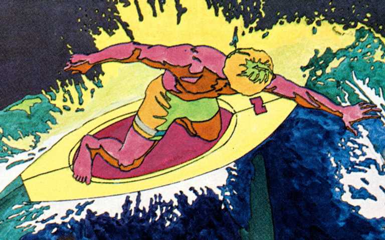The “skimming” style Doyle refers to was called “speed surfing,” and it was quite the rage in 1969—even though, as far as I can tell, it had no practical meaning beyond a slight narrowing of the stance. Read this happy-babble 1969 Dru Harrison article on speed surfing and watch the second half of this Dru Harrison video, and see if you don’t agree with me that, one, Harrison is deluded with regards to speed surfing, and two, he is also among the smoothest and most overlooked first-generation shortboarders. Style for days. A tiger on Vaseline, as Bowie wrote after watching Dru surf Honolua Bay.