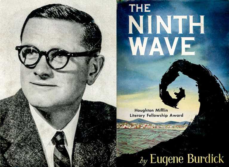 Next up is Mike Freesmith, antihero of Eugene Burdick’s bleak political-noir debut novel The Ninth Wave. This is what I’m talking about when I say it’s impossible to write about surfing itself, but very possible indeed to create a magnetic surfing character—who in this case (spoiler alert if you’re going to read the book) turns out to be a power-mad backroom politico psychopath. Burdick went on to write a pair of Cold War best-sellers, The Ugly American and Fail-Safe, both of which were made into movies; click here for some deep-cut Ugly American Marlon Brando. Burdick, to his credit, didn’t let the heaviness of the work weigh him down. Here he is table-top dancing in Papeete, Tahiti, 1960, four drinks beyond caring about domino theory or the Tito-Stalin split. Read a Ninth Wave excerpt here.