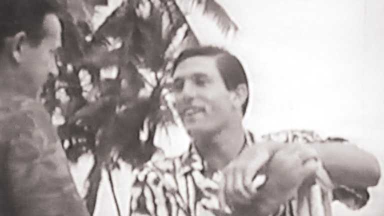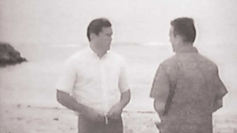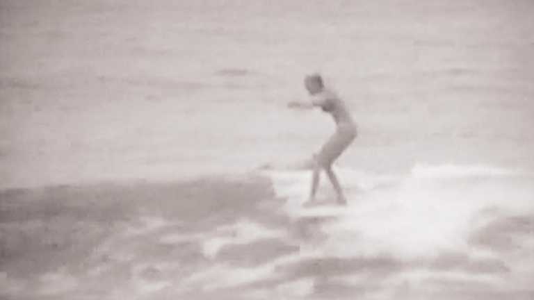 Strauch, handsome but grim-faced in a striped polo shirt, tackles the subject head-on, telling us that surfing had been populated with “a lot of bums” and earned a reputation as a “delinquent-type sport”—but it’s now practiced by “doctors and lawyers” who have added “a sophisticated air” to the proceedings. Hemmings, with his over-enunciated helium-tinged voice and a button-down short-sleeve shirt tucked into his trunks, is Hemmings: forever deeply confident and satisfied with his own style-free jockstrapping middle-of-the-road remarks. Greg Noll is also a jock, but at least has the decency to leave his shirt untucked, and in his own special redneck way has style to burn. Joyce Hoffman looks straight into the camera and, like a determined middle-schooler onstage reciting the preamble to the Constitution, delivers a pre-written speech on the virtues of “girls surfing.” Butch Van Artsdalen, on crutches after taking a fin to the ankle, smiles and slurs and looks like he’s had just the right number of hits from Jodi’s hairspray bottle, and proves that surfing, never mind what Strauch said a few minutes earlier, is not yet finished being a delinquent-type sport.