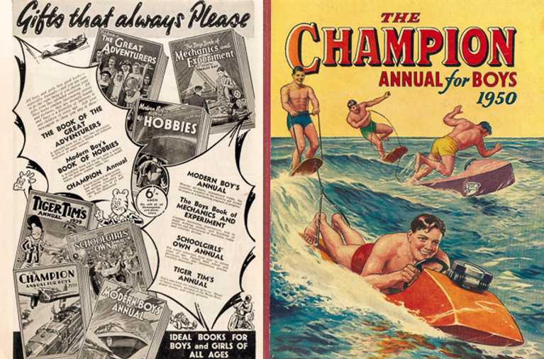 Not much info out there on The Champion Annual for Boys, except that it was published in the UK from 1924 to 1956. I’ll leave it to you to decide if this 1950 cover is more or less unnerving than Frank Zappa’s Weasels Ripped My Flesh LP cover. Either way, it is yet another reminder of just how obvious tow surfing was to everybody, surfers and the surfing-curious, decades before tow surfing became a real thing. Read: “Misfire! Why Didn’t Motorized Big-Wave Surfing Happen 30 Years Earlier?”