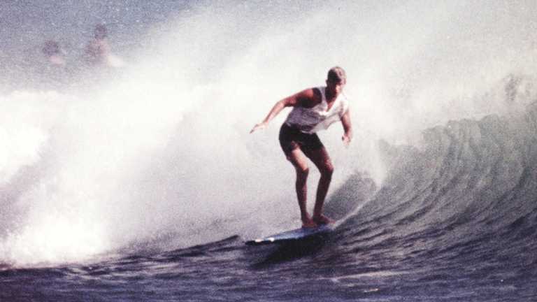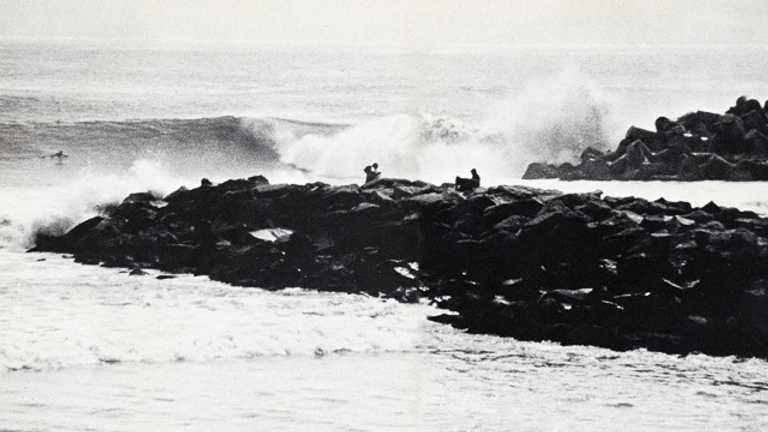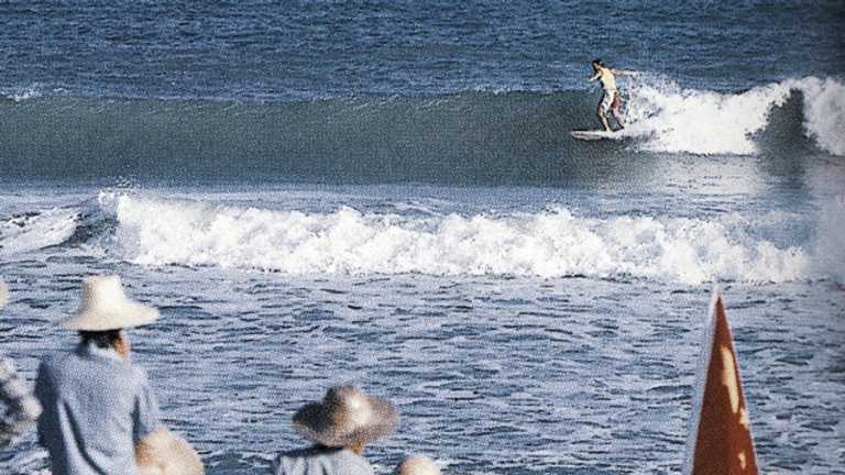 In the Fall of 1971, 11-year-old Matt George was dropped off at Steamer Lane, while his brother Sam and a friend went to get milk and donuts. The surf was small, and the wind was cold out of the east. “I was standing with my hands in my pockets, shivering,” George recalls, “and I look to my left and here comes Jock Sutherland, walking towards me, with a shaved head, wearing a long john with the ankle zippers unzipped. He stopped next to me and looked down, and I was almost dizzy—just the full-on brush with greatness. He looked out at the surf, looked back at me and shrugged, so I shrugged, then he climbed down the cliff and paddled out. The first wave he caught was maybe shoulder-high, and he did a fade, turned, drifted up into the pocket, and did a side-slip. Then here comes the end section and he did, I swear, in 1971, the first floater I’d ever seen. That was the only wave he rode. Next thing I knew he was back up the cliff and about to walk past me, and I said the only possible thing I could say, the classic Santa Cruz opening line: ‘What’s the water like?’ He shuddered and went, ‘Whew,’ and walked past. Two minutes later Sam came back. I said, ‘Yeah, you know, I was just rapping with Jock Sutherland’.”