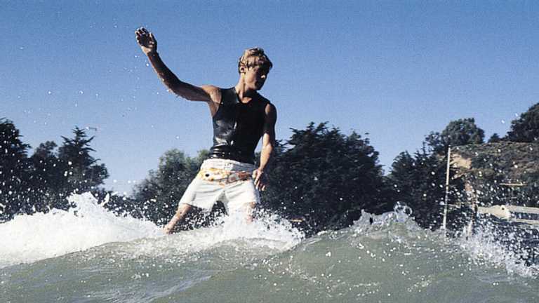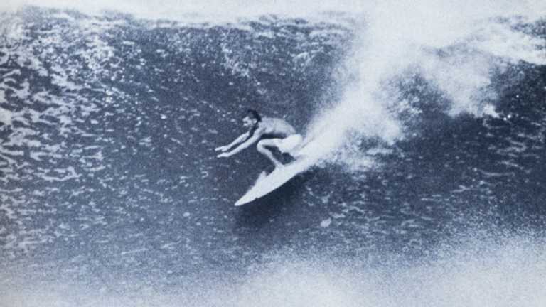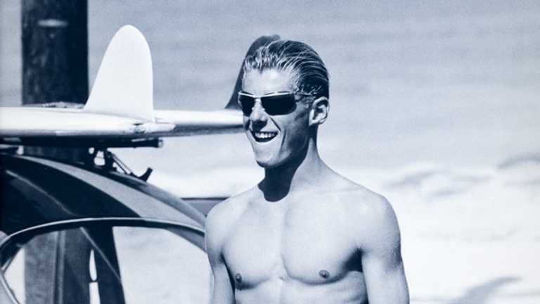 Even with those distant empty waves, though, you can’t take your eyes off soon-to-be Endless Summer star Mike Hynson.That gleaming-white fastback hair and and slightly put-upon squint, the three-quarter-sleeve cardigan, the casual parade-rest stance. Hynson is straight 101-proof confidence. Yet he confounds me, and always has. Hynson comes off as small and oversize at the same time. A leader and a hustler—somebody who, like Miki Dora, I might from a distance thrill to or be entertained by, but would go out of my way to avoid having contact with. Bruce Brown had a lifelong friendship with Endless Summer's other star, Robert August, but famously disliked and feuded with Hynson. Yet the bantamweight regularfooter, as writer Jamie Reno points out in this bittersweet San Diego magazine article feature, draws the camera as if he were magnetized: "Hynson’s charismatic style, in and out of the water, and his chiseled blond surfer-boy good looks are, along with Brown’s folksy narration, among [Endless Summer's] most identifiable aspects.