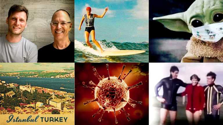 Finally, I was buoyed this week by the EOS workload, which included building a page on cheerful Cornish senior surfer and nonconformist Gwyn Haslock (that’s her, above, two years ago in Newquay, upstaging Rory Russell), and also finally getting around to posting “Black Sea Blues,” my favorite piece of surf writing by William Finnegan. Read the whole thing here, and know that the rest of the essay is as good as this opening paragraph.
