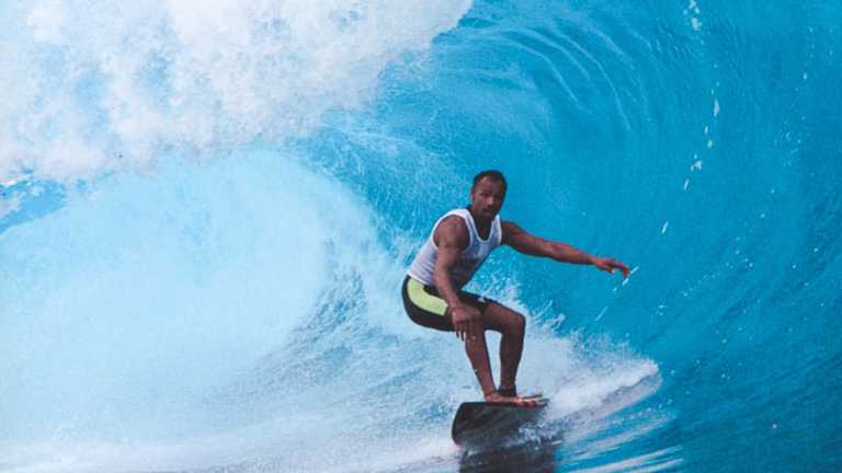 So for Tarantino, or the person watching a Tarantino film, the question is: How far are you willing to go in terms of allowing history to mitigate a person’s crimes, flaws, and moral failings? Or more to the point: How damaging was it for Marvin to grow up poor and dark-skinned in Hawaii during the 1960s and ’70s? Since we’re being cinematic and historical, picture this. It is 1909 on the Waikiki beachfront. Before us is a hot young gun with seven vowels and two apostrophes in his last name, the Marvin Foster of the new century, eating lunch after a surf and minding his business when somebody walks up and drops this magazine article in his lap. He reads to the bottom of the page. “The white man and boy are doing much in Hawaii to develop the art of surf-riding . . . and at the recent surfing carnivals in honor of the visits of the American battleship fleet, practically every prize offered for those most expert in Hawaiian water sports were won by white boys and girls, who have only recently mastered the art that was for so long believed to be possible of acquirement only by the native-born dark-skinned Hawaiian.” Our boy shakes his head, hands the magazine back, tosses his board into the banyan tree for safekeeping, heads home to find out a Mainland newcomer just paid down his uncle’s delinquent property tax bill and legally snatched up the deed to his family’s one acre-plot.