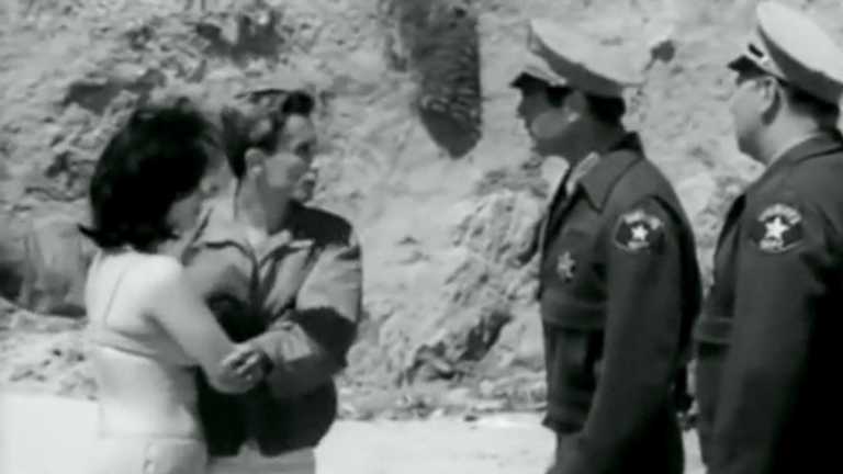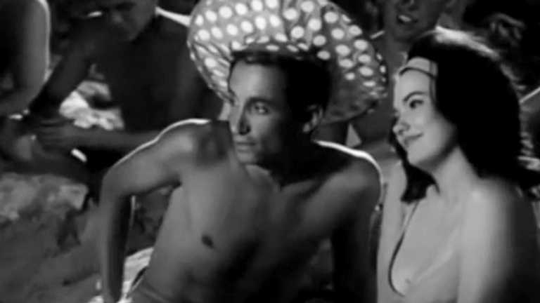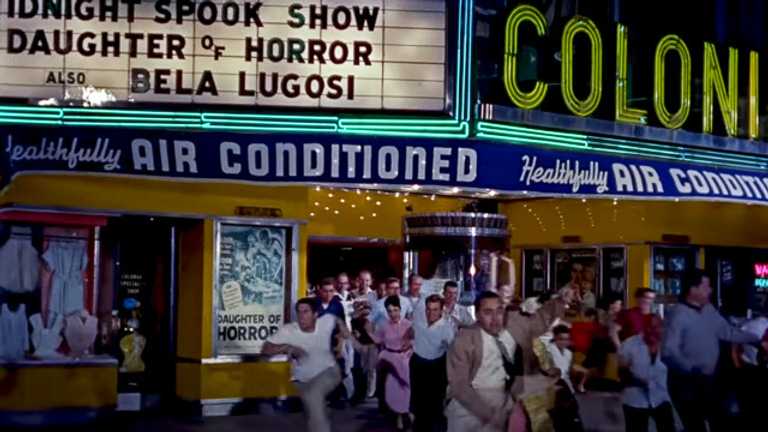 Party Beach is a jumble of midcentury B-movie scenes and characters. Bikers, bikinis, squares, tough cops, loose women, radioactivity. It was the only beach movie shot on the East Coast (Stamford, Connecticut), and there is a lively sequence where our handsome young hero drives an MG convertible at speed through Midtown Manhattan—look close and you’ll see the still-new Guggenheim Museum. Another Party Beach plus: the monster gets its own genuinely spooky first-gen electronica theme song.