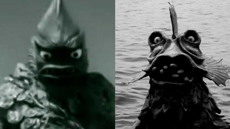 Party Beach and Beach Girls are similar in a lot of ways, starting with the monsters, both of which are big rubbery people-killing fish creatures with arms and legs. One has teeth. The other, I don’t know what’s going on with his mouth but he looks like the coked-up winner of Nathan’s Famous Hot Dog Eating Contest.