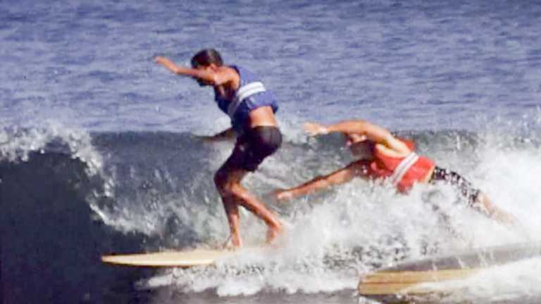 Right away I started scoring some good shots. And one of the best was of Mickey Dora kicking out onto Johnny Fain’s head. From the beach, you could hear rail connecting with skull. I clicked my trusty Pentax at the precise moment of impact. Just as the shutter released Surfing publisher Dick Graham turned around and shouted, “I’ll buy that one!”