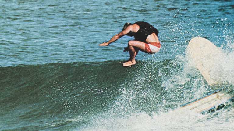 Before we leave, here’s one more Malibu clip, also from 1965, but totally different from the rest. Instead of Dora, Fain, Baxter and the rest of surfing’s towel-snapping legends, we see a small platoon of Valley kooks storming over the hill in the family wagon. You know these guys. The enemy. The sunburned spawn of Gidget and Brian Wilson; the plague of beginners who will divide and multiply like adenoidal zinc-covered Fantasia brooms to ruin surfing. Right? Maybe. The 1970s middle schooler in me who had to grovel for the meanest of inside scraps at Malibu, thanks to the crowd, still lashes out that way.