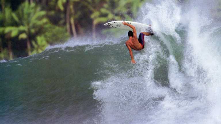 Jump ahead 20 years and we find Brenden Margieson, the Missionary of Mateship, the High Priest of No-CT-Needed Surfing Perfection, and while making this clip of Brenden I was struck by how his waveriding seemed to rev higher and harder as he aged. When Jack McCoy filmed Margo for Sik Joy and Sons of Fun and the rest of those gorgeous early- and mid-’90s Billabong movies, Brenden’s knock-kneed power-chi and flow looked like upgraded Mark Richards. Ten years later, in 2005’s Passion Pop, Brenden is loosing off bullwhip top turns, the spray from which must have burst forth from the TV screen to anoint young Dane Reynolds. I direct your attention to that gouging two-stage knockout of a turn at 2:05. Am I wrong?