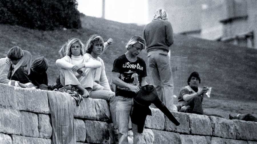 Some are surveying the lineup and discussing how it was earlier, what it’s like now, and the prospects of it getting better later in the day. Others decide whether the surf is worth missing another day of school for, or whether or not to spend the day looking for a job. One guy buys a Herald but never reaches the “Positions Vacant” section, instead focusing his attention on the weather map and considering the prospects for better surf later in the week.