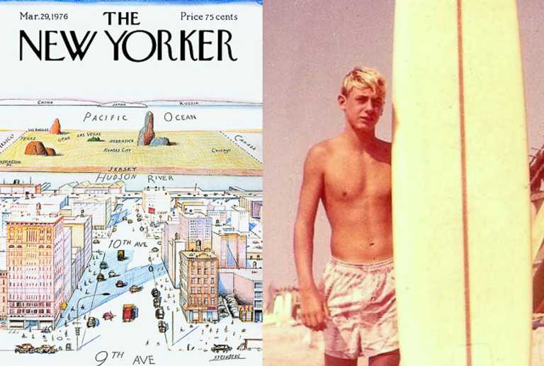What giant snobs we were, all of us California-born surfers, for a few decades there but especially the 1960s. Hawaii was above us, of course. Australia mattered, once Farrelly and Young literally beat us at our own game. But in the continental US, as far as we were concerned, the sun rose on one side of Pacific Coast Highway and set on the other, and if for some reason we happened to look east it was with a bored expression or at most a flicker of curiosity or, maybe, for the nascent surf industry, a big sales department grin and a quote for ground-shipped 100% authentic California-made surf goods on net 30 terms. Nothing back there, in other words, but beginners and market share and an infinity stretch of weak closeout beachbreak waves. All the states blurred into one entity; it was just the East Coast; it was a flipped-over version of that famous New Yorker cover where a cross-street in Manhattan—the real Manhattan, dummy, not Manhattan Beach—is big and foregrounded and detailed to where you can see storefronts and cars and pedestrians, while the rest of the nation telescopes down a flat beige rectangular plain, a few rocks, and off in the distance a light-blue ribbon labeled as the Pacific Ocean.
