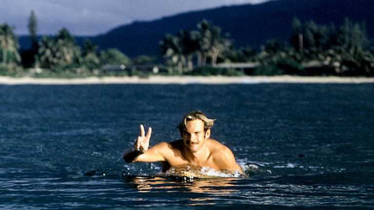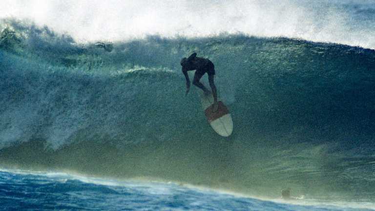 Halfway through the film we were dazzled by a face so abrupt in its savagery and its vestigial traces of paradise that I figured the audience uproar was a simple reaction to the jagged beauty of the face itself. Bygone island eyes. Disheveled black hair tangled around this face and down past his shoulders like a thorn frame. Underneath the face flashed the news that this was David Nuuhiwa (New-eee-vah), but everybody in the place already knew that except me, which was why they were screaming.