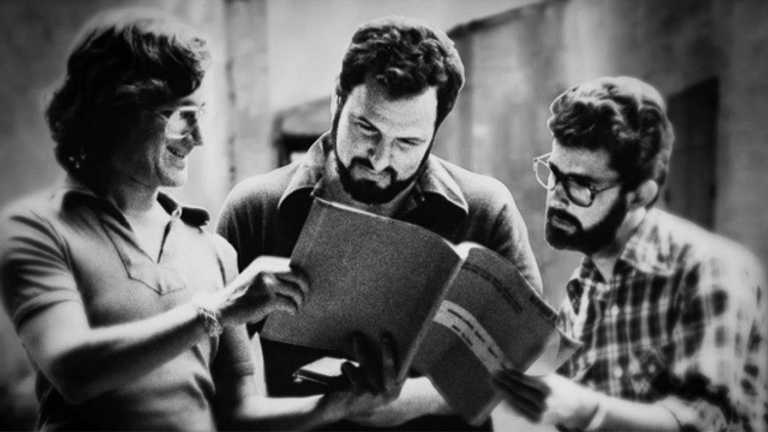 I began making day trips to Milius’ office at Warner Bros. In the adjoining office sat Steven Spielberg [who was] working with Milius, writing and prepping the comedy feature 1941. The unions still had incredible control over Hollywood, but Spielberg, Milius, and their friend George Lucas were challenging the status quo with enormously profitable films. One day the three of them were at John's office and we were all joking around about filmmaking. I would later learn that they had each agreed to share some of the profits from the three personal projects they each had in production. Incredibly, Lucas' film was Star Wars and Spielberg's film was Close Encounters of the Third Kind. John's film was Big Wednesday. [Each filmmaker] gave each away two points from the net profits they owned in their own creations [to the other two filmmakers]. This was their way to show the old-time studio bosses that a new era had begun of youthful, creative collaboration.