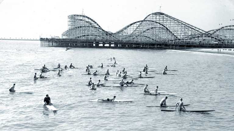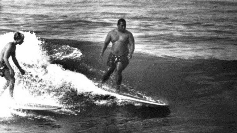 I tipped this last week, but it bears repeating. EOS has two new sections, Surfboards and Contests, and while it’ll take a good long while to build them out, we’re getting started. The 1938 National Surfing and Paddleboard Championships is the latest add to the Contests page, and who knows what kind of format or criteria we’re dealing with here, in terms of winners and losers, but here’s what the surfing part of the action looked like on finals day: