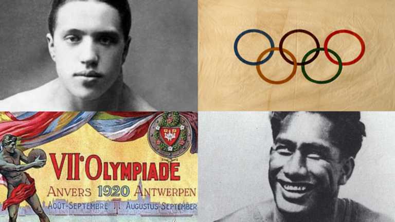 And so, with Duke’s encouragement, up the pole Hal went, and that was that until 1997. Duke of course was long dead by then, but Prieste, 100 years old, attended an Olympic committee banquet at which he revealed that he had the long-missing Antwerp flag—which was the first and original Olympic flag, mind you—stashed in his closet, and for 75 years had been showing it off to friends as a kind of party trick.