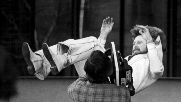 Furthermore, Gerr comes by his hustle and showmanship honestly, and to make the point I turn now, with great pleasure, to Józeph Gerlach, AKA Jumpin’ Joe, Brad’s furry-chested Hungarian father who, as a teenage platform diver, came up just short of a medal in the 1956 Olympics, at which point he defected to America—a nation that spread itself out before this grinning young refugee like a continent-sized fairground. Diving made Joe a star at the University of Michigan but didn’t pay the bills, so he turned to stunt performing, and eventually worked up an act where he jumped 100 feet from a crane or balcony or hot-air balloon, swanned out, turned, and landed on a thick mattress-sized foam cushion. He called it the “Sponge Plunge.” $4,000 per jump, or maybe a cut of the gate; terms negotiable. On one occasion Joe’s lower body missed the sponge and he broke both legs. Once he missed with his upper half and broke almost every bone in his face. But Gerlach was well-trained and calculating; more of a showman than an adrenaline junkie.