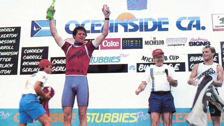 Brad was 19, and it was his first world tour contest. He came flying out of the Trials, beat ’84 Stubbies winner Shaun Tomson in Round One, and just kept going. I was on the beach for finals day and remember thinking Brad was going to crack at some point. But no, he just kept winning and next thing we knew he was matched in a best-two-out-of-three final against reigning world champ Tom Carroll.