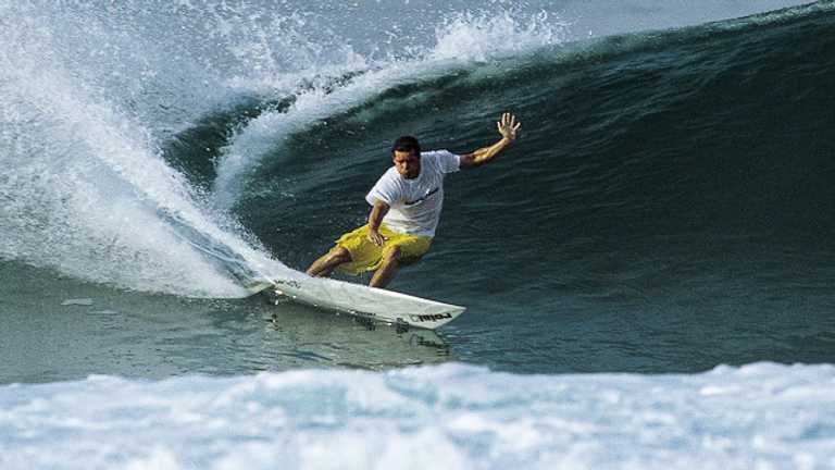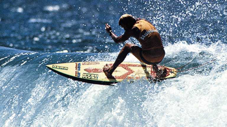 Pro surfing’s #1 feel-good moment of 1985 was Tom Curren winning his first world title—never mind that the achievement led to a pig’s breakfast of a tribute section in Amazing Surf Stories where the silken visuals of Tom’s wave-riding are laid without mercy or care atop a two-bit Casio-made anthem titled “Top Cat,” with Curren lauded as “pride of the USA” by a singer with a British accent, which in turn leads to an on-screen Curren interview with the cringe coming at us in layers and flavors, like an expensive unpronounceable burgundy.