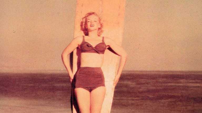 Zahn is maybe best remembered as the person who midwifed the lightweight Joe Quigg-shaped “Darrylin board” for girlfriend Darrylin Zanuck, daughter of movie mogul Darryl Zanuck, and thus helped launch the hot-rodding post-Simmons age of board design. Meanwhile, thanks to Darrylin putting a word in Daddy’s ear, Zahn got a foot-in-the-door starter contract with 20th Century Fox, which swiftly led to a not-secret-enough romance with Norma Jean Baker, another new Fox hire. This went over as well as you’d expect with Darrylin, who had Zahn and Baker both fired. He bailed to Hawaii to go surfing. She changed her name to Marilyn Monroe and re-signed with Fox. (A website called Marilyn Forever has this to say about the Monroe-Zahn affair: “She enjoyed his company but clearly Zahn was going nowhere and she wasn’t about to waste too much time on him.” Maybe so, but I wonder if perhaps Tom, handsome as he was, just didn’t have much game. “She was in prime condition [and] tremendously fit,” Zahn later said of Monroe, sounding as poetic as a Nebraska cattle breeder. “I used to take her surfing up at Malibu. She was very good in the water, very robust.” Then a final burst of romantic flair: “Gosh, I really liked her.” Zahn, the big lunk, did everything but shove Monroe into Arthur Miller’s elucidative embrace.)