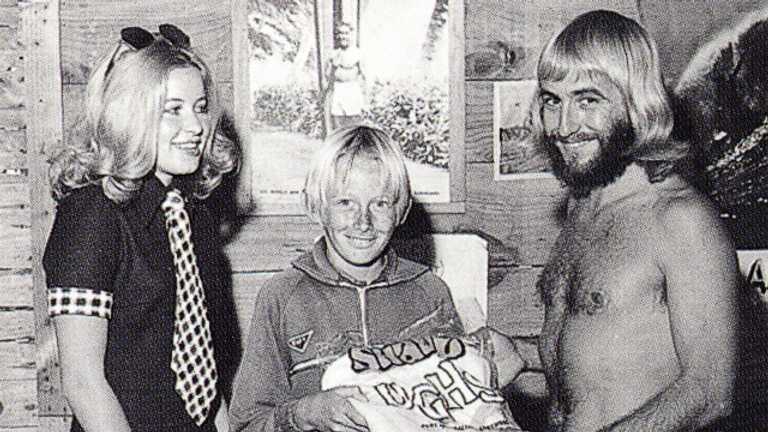 “The psychedelic era hit, mate, and wow, didn’t all hell break loose!” Shane shouts, with much laughter. Russell Hughes designed a surfboard model called the Crystal Vessel, and with that cosmic name ringing in his head, Shane created a new ad. Russell was photographed leaning against a tree in a bright yellow satin shirt with an embroidered polo-neck collar, looking dreamily skyward. The copy read: “Look up through a Crystal Vessel and get nailed to the wall.” Shane says: “Everyone rang up, wanting to send us twenty bucks for a Crystal Vessel—because they all thought it was the shirt we were advertising!”