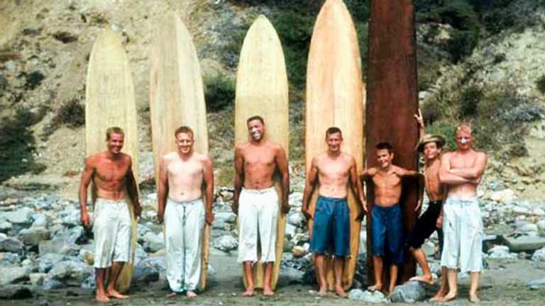 I knew that Phil and Mike were friends from way back, but not until I saw last week’s Easy Reader did I realize that both are featured in this amazing mid-’50s Palos Verdes Cove photo (below). That’s Mike on the far left, with the easy grin and ripped midsection (a lifelong hardcore paddleboarder, he did the 32-mile Catalina race at age 71), and there’s Phil on the right in the Huck Finn hat, possibly the last time he struck a pose for a camera. I don’t know if the two kept in touch. I do know that, even if you’re not a Hobbit-hugger like Wayne Bartholomew, all of us to one degree or another think of surfing as a lifelong grand adventure disguised as a sport, and that the people you knew and hung out with at the beginning have outsized roles because they are essential to your origin tale. Anybody who has given themselves over to the S&M-adjacent love story that is a life spent chasing and riding waves can say to a fellow traveler, regardless of age or station or place of birth, “We are so lucky to surf,” and the statement will be heartfelt. But when you say it to somebody who was there with you at the beginning, the luck becomes less amorphous, more contoured and specific. Phil and Mike’s luck began in that rocky cove in Palos Verdes, dragging wooden boards down the cliff trail, making pyramids from their sack lunches and T-shirts and Pendletons, and paddling into a cold Pacific in nothing but goosebumped skin and Navy surplus cutoff shorts.