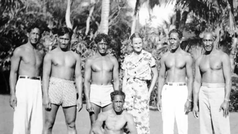 My impression, built from nothing more than a few promo shots of the six brothers lined up in a row on the beach at Waikiki, is that Duke not only went out and gathered up all the achievements, but lived a fascinating globe-trotting life while the others stayed home playing uke and surfing and doing beachboys things. And true, Duke ranged further, met more people, was more shaped by forces outside of Hawaii than his siblings. But did his outrageous level of fame translate to a more colorful or deeply-experienced life? Two months ago I would have said yes, but now I don’t know. The younger Kahanamokus loved Brother Duke and cheered him on, sure. But they were out there living their own lives, and in fact most of them seem to have had a well-above-average knack for adventure, success, failure, even a bit of scandal. Fate no doubt bent their way because of the famous last name. But Duke himself wasn’t pulling anybody’s strings or sitting on any shoulders. For that matter, there was a 15-year period during the 1910s and ’20s where Duke was away from Hawaii altogether.