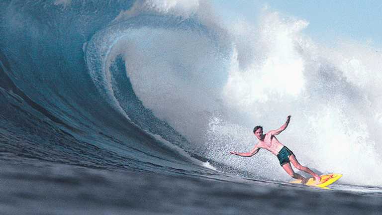 Meanwhile, Bobby Owens’ ongoing surfing career is both surpassingly beautiful, and utterly non-strange—apart from his fish-belly skin, flambéed hair, and hive-swarming freckles. Owens’ specialty was big, fast, long-sloped waves. (Click here and see for yourself.) For years he lived at Sunset Beach, and when the swell was huge and Owens was flying down one of those endless northwest peak declivities, you expected to hear the same clanging cowbells that followed Franz Klammer down the hill at Patscherkofel in the ’76 Winter Games. Owens, like Klammer, was all thrust and flow and risk and impeccable rail work. Owens, like Klammer, was a master of calm amid high-speed danger. (But let’s not push it too far. Klammer dropped the fizziest of quotes, like this one: “During the technical sections of a race, I have to concentrate. But during the long straight gliding bits I tend to think about what I am going to do with my wife tonight—it helps me go faster.” Owens, on the other hand, once told a reporter, “It’s really hard for me to be more flamboyant than I am.” And then probably asked for a retraction.)