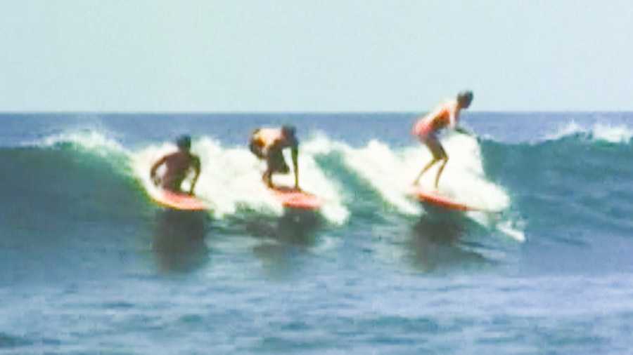 “Road to Santosha” opens a new chapter in History of Surfing. Early on I mention a 1968 surf jaunt to India made by Claude Codgen, Mary Lou McGinnis, and Bob Purvey. The trip was filmed for a Hollywood-made surf movie that nobody saw called Follow Me, and I took the opportunity to slice and dice the footage into this garage-rocking little clip. Since Follow Me was already loaded into Final Cut, I rewound to the opening sequence and was delighted with what I found. Corvettes and speed boats and a Beatles-like sprint across the LAX tarmac—now that’s how to launch a surf trip!