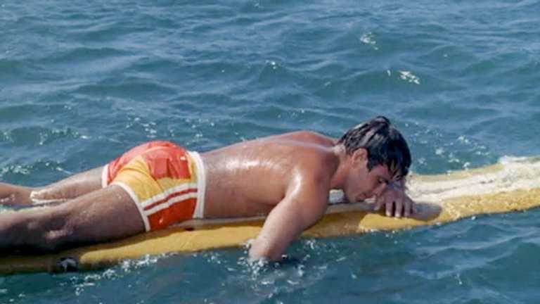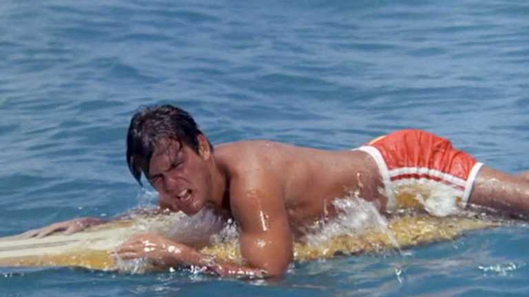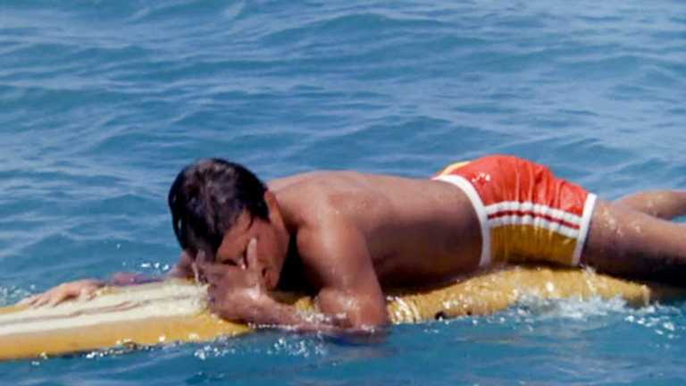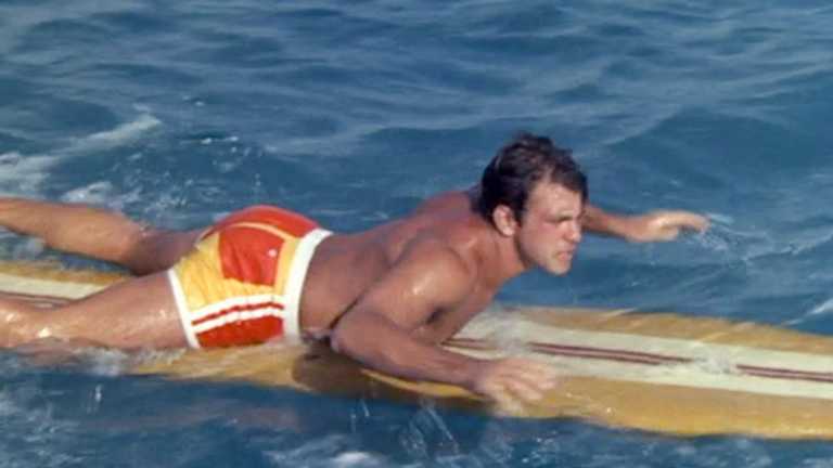 You ran that shot of Fabian paddling out at Haleiwa. He was such a kook that they [the filmmakers] bolted a 4-by-4 steel plate to the bottom of his board, with a loop, to which they tied a rope with a weight at the other end, so that when they filmed the part where everyone’s sitting in the line-up, waiting for a set, he wouldn’t drift away. There is actually a split-second in the movie where you can see the plate in a frame grab. I know all this because I was the guy who fixed those boards for the film.