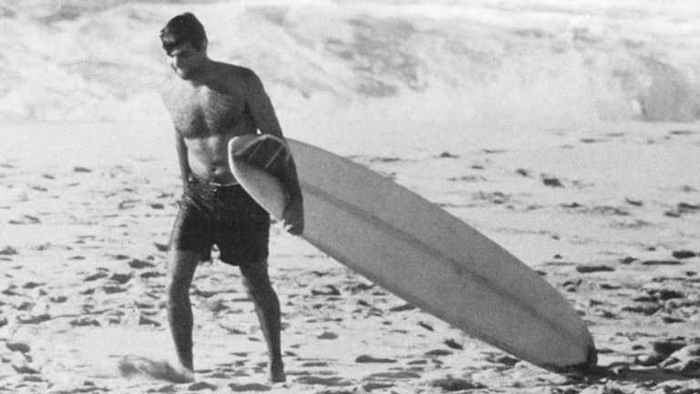 What can you do, performance-wise, on a 10-foot board sheathed in 40 resin-sucking ounces of cloth, apart from sending up prayers that the thing doesn’t Panzer-roll you during a wipeout? A spinner, maybe. Or a coffin. The coffin was always a joke move, almost sub-hot-dog, something your Hobie-skateboard-riding little brother did on the school playground to impress the girls. But even the silliest trick can be shaped into something beautiful—click here to watch John Severson recline like Burt Reynolds on bearskin as he glides across a beautiful T-Street left.