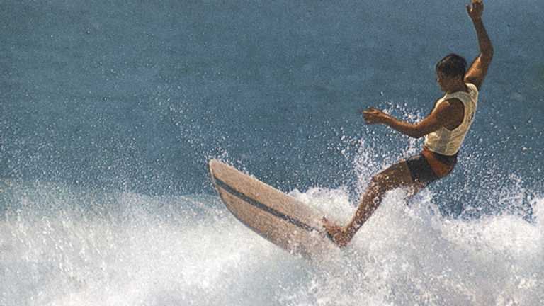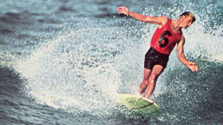 I am impressed and baffled by people like Mick Dooley, Aussie “functional school” virtuoso and ’64 Bells Beach winner, who didn’t begin surfing until young adulthood. As a kid, Dooley was a boarding school detainee and high-achieving tennis player (nearly 80 today, Mick will smile and self-efface, then destroy you in doubles), and claims he’d never so much as been to the beach before a friend took him to Bondi at age 17 or 18 and put him on a board. Five years later Dooley was runner-up to Nat Young in the Australian Invitational, the next year he won Bells and was a World Titles finalist. A small, lithe, beautiful surfer. I wish I had more footage of Dooley, but watch here and you’ll get the drift. I wonder if the joy in Mick’s riding comes through so clearly because in ’64 he’s still relatively new to the sport?