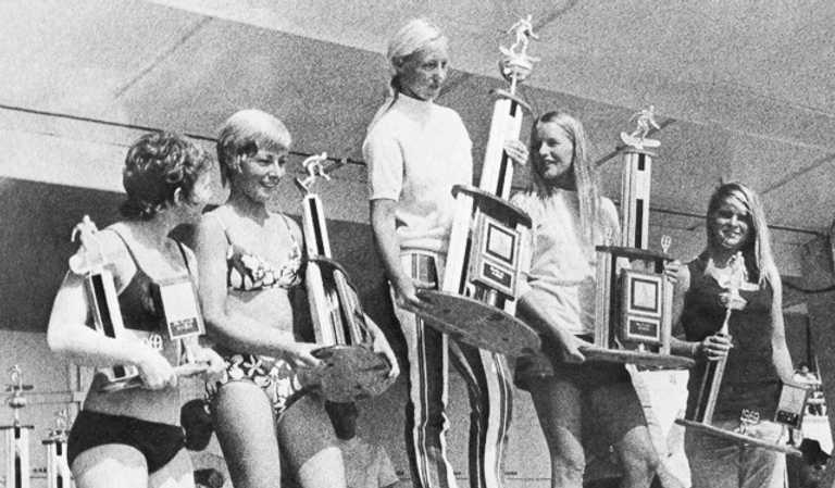 Finally, we have two-time world champion Sharron Weber, my favorite Weber of all, no relation to Dewey although both were small and blonde and tough as nails. “Two-time world champ,” believe it not, undersells just how dominant Weber was, competitively, in the late ’60s and early ’70s. She was runner-up to Margo Godfrey in the ’68 world titles, then won the next two, in 1970 and ’72. She was a six-time Hawaiian state champ—picking up her first after she’d been surfing less than two years—and US champ in 1969 as well. Weber was a killer in a comp vest, in other words. And was easily, without question, the most ignored and forgotten A-grade surfer of her period, or any period actually. Nobody’s even close. Joey Hamasaki, a few years earlier, was in the same fix, both in terms of talent and getting all but blocked out in the surf media. But Joey was too nice, too quiet, and probably too Asian if we’re being honest, to get noticed. Sharron is the sport’s once and forever queen of overlooked. It’s become a thing unto itself, in fact. “I’m a secret surfer,” Weber later told writer Jen See. “I’m known in your magazines for not being known.”